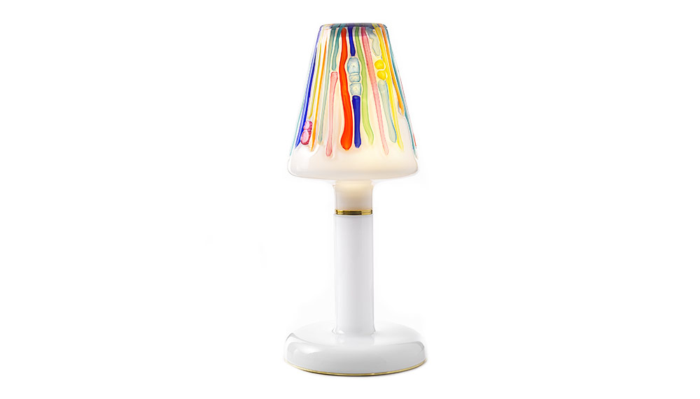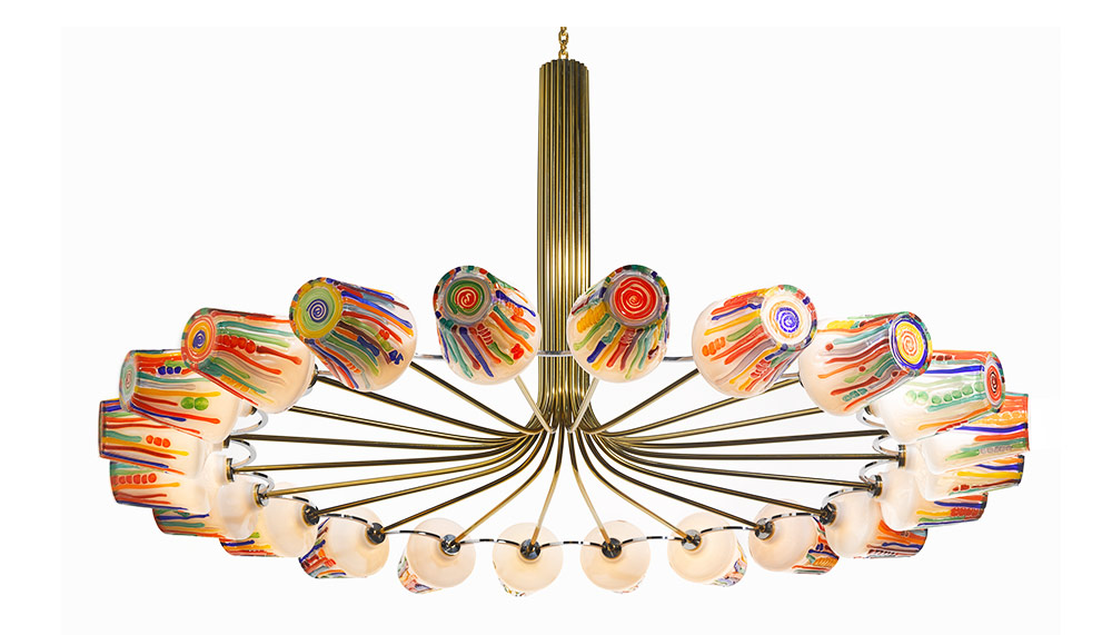 After visiting the Lasvit factory, the Campana Brothers soon conceived the Candy Collection as an extension of their own “Sushi” series – a tribute to the tradition and methods of upholstery. The Candy Collection, which includes the Sphere chandelier, the Ring chandelier and the Lollipop table lamp, was inspired by the colourful candies sold in Brazilian markets. The affable 63-year-old designer explained the process: “When Lasvit invited us to make the collection, we wanted to bring to the glass universe part of our universe made in our studio which is the Sushi. We visited the factory – it was in the Czech countryside – it looks like a fairytale. They looked like they were making candy; the melting glass looked like caramel. (What they have done so far) is very clear, so we tried to go the opposite – the universe of colours.”
