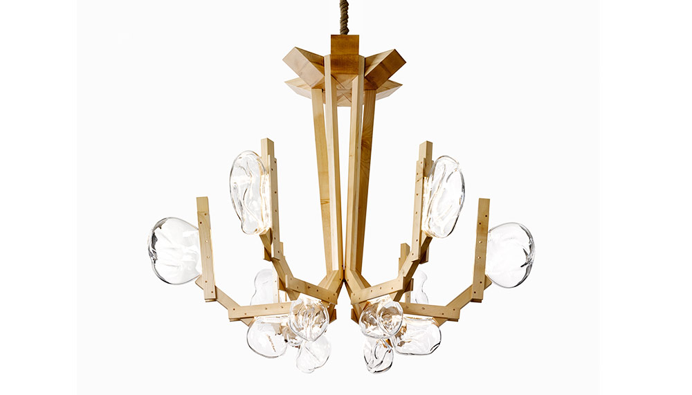 We were sitting under the Fungo chandelier – a singular, striking piece comprising of rigid wood and irregular blown-glass. With a twinkle in his eye, Campana confessed that it was his first time setting eyes on the chandelier since it’s inception. Surprised but pleased with how large it turned out, he revealed that its creation was pure happenstance. On his second visit to the Lasvit factory, he had gone down to the humid basement where the ancient wooden glass-blowing moulds were stored. The odd shaped fungus he noticed growing on them sparked his imagination, and 30 minutes before flying back to Brazil, he convinced the art director to challenge his artisan’s glass-making techniques into making the amorphous shapes that seemed to bloom organically out of the chandelier’s wooden frame.