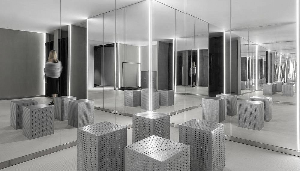 As a reprieve from all the dimness, the theater’s waiting room is brighter and less intimidating than the preceding spaces. Guests are presented with costumes to change into — a part of the production that encourages total immersion. The plaster treatment on the walls feels less luxurious and more subterranean, even with the contrast of chic costumes. MDO again creates a sense of urgency with their layout of each pathway. Audience members are forced to choose their path — the fractured pattern on the floors is a deliberate provocative touch. In a final sequence, guests enter ahall of mirrors, an elegant acknowledgement of the cinematic precedence set forth by directors and auters of earlier generations. The brightness can either be a comforting or a nerve-wracking presence, depending on the individual experience.