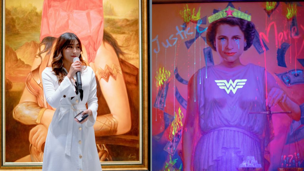 Perhaps, and most interestingly, owners of a Karwai Chan original from the Superheroes: Redefined show will also discover the Easter eggs embedded on these artworks – hidden messages which become visible in low light conditions. “I added this glow-in-the-dark feature to show that each piece has two meanings, and that it can be fun too,” she says. Man Wonder Woman is one such work, where what is ostensibly Wonder Woman’s face is covered to offer Chan’s commentary about not judging books by their covers. “In the dark, you then see the message written in neon – ‘shallow minds shadow inner beauty’.”