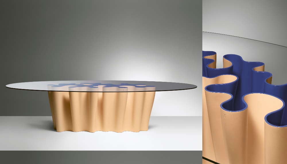Two new design studios were added to the roster this year, Atelier Biagetti and Zanellato/Bortotto, both hailing from Italy. Anemona, a glass-topped dining table whose undulating base is covered with a natural beige leather on the outside and contrasting deep-blue Louis Vuitton lacquer on the inside was Atelier Biagetti’s contribution. Zanellato/Bortotto made its debut with Mandala, a tripartite screen of intricately woven leather inspired by nomadic craftmanship. As hypnotic as its namesake, the piece features gently rippling colours reminiscent of the Venetian lagoon at sunset.