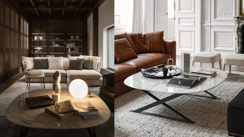 In the Maxalto collection of 2021, you will find these elegant small tables in two versions; a lower one with an X-shaped frame with square and rectangular tops (though rounded at the corners), the other being a series of round and oval tops. To ensure that satisfaction is absolute, a wide range of finishes are offered to clients with marble or MDF wood fibre tops, ranging from glossy Guatemala green and bright chromed to brick red.