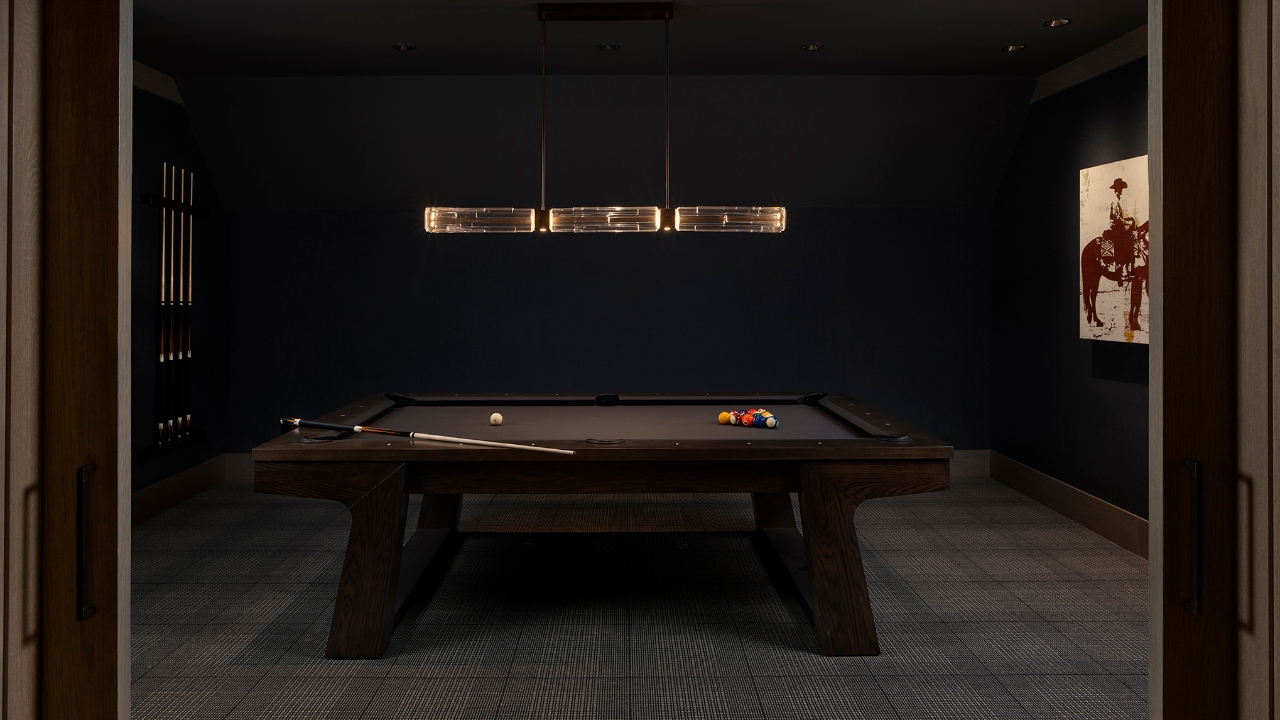 The modern mountain residence boasts six bedrooms —equipped with en suite bathrooms—each designed in a warm ambiance of inviting interiors and large-scale windows to rake in captivating views. The residence also includes an additional billiard and media room for extra rooms of leisure.