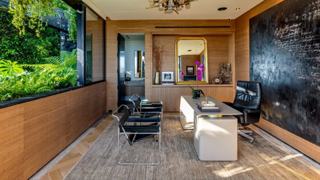 Designed for leisure and entertainment, amenities include a plush theater with a green velvet ceiling and disco balls; a safari-themed library that pays homage to L.A. wildlife legend P-22; a custom bar; games area; and a private Japanese bonsai garden. If that’s not enough, there is a hidden nightclub and entertainment level that opens by pulling a sword off the wall.
