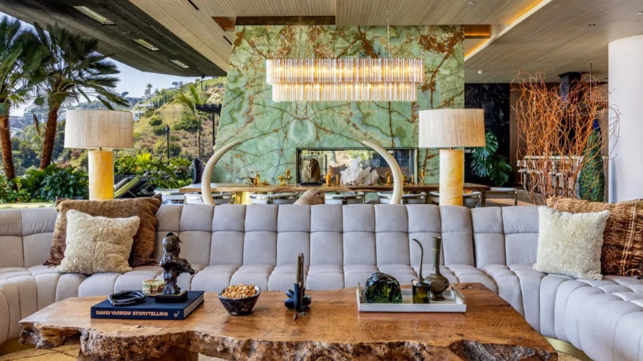 The West Hollywood home, located at 1851 North Stanley Avenue, was completed in 2023 and is situated on a half-parcel with sweeping city views. The move-in ready lair has nearly 13,000 square feet of living space with six bedrooms and nine bathrooms. The home is the brainchild of a trio of luxury real estate brokers and entrepreneurs—power couple Branden and Rayni Williams of The Beverly Hills Estates and Jason Somers of Crest Real Estate—who call themselves Disco Volante. They spent seven years developing the estate, including five years of construction.