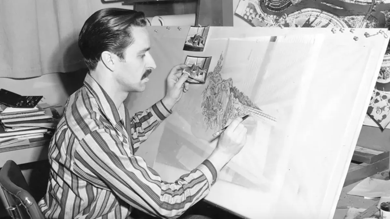 Revered as one of the world’s foremost production illustrators, Armitage moved to Los Angeles in 1952 with $84 in his pocket and landed a job at Walt Disney Studios, where he contributed to backgrounds and layouts for features such as Peter Pan, Sleeping Beauty, Mary Poppins, and The Jungle Book. The Australian-born artist also did production illustration for Fox’s Oscar-winning sci-fi classic Fantastic Voyage and created artwork and designs for several Disney theme parks.