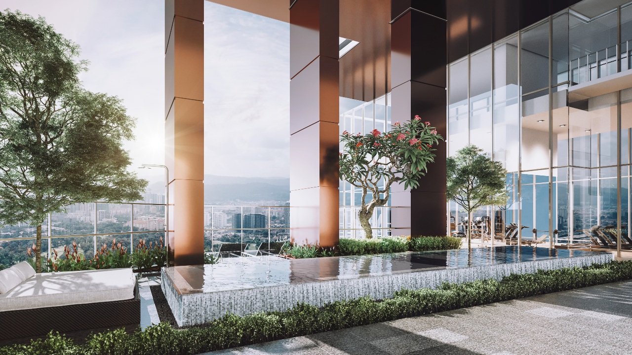 On the other side, there are two private pool zones and a conservatory that is designed with orchids and other lavish flowers for residents to re-energise from the demands of work and the city. Further out, there is a social bar and private dining room with a fully equipped kitchen.