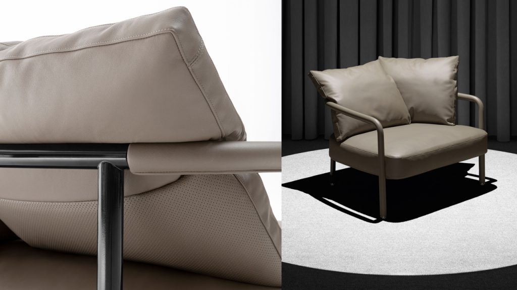 Pochette is an unlikely combination of steel and leather, courtesy of designer Piero Lissoni. While painted steel tubes give the armchair shape and support, leather adds comfort; and the result is a chair that allows you to lounge in style. Expertly crafted with careful leather workmanship, the two leather back cushions can be arranged in any way you like: whether you’d like to lounge and read, or placed in the living room for gatherings and conversation.