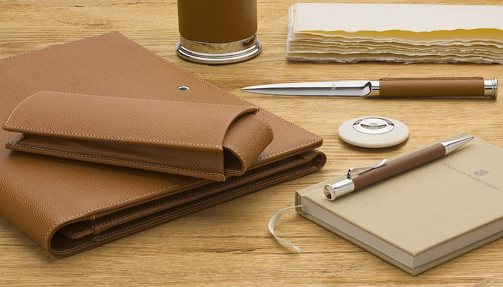 Beyond the realm of ink, Graf von Faber-Castell also produces a range of lifestyle accessories to complement the nature of its clientele. The Epsom range of desk accessories completes the office of a modern millionaire, while a full suite of leather-bound accompaniments like pen cases, wallets, credit card cases and key fobs are available in the same expressive textures or impressive colours of the Classic and Guilloche series. There are notebooks (for when the sketching muse strikes) and the brand has even ventured into the realm of jewellery, with cufflinks that adhere to the very same ‘Handmade in Germany’ ethos that all Graf von Faber-Castell products do.