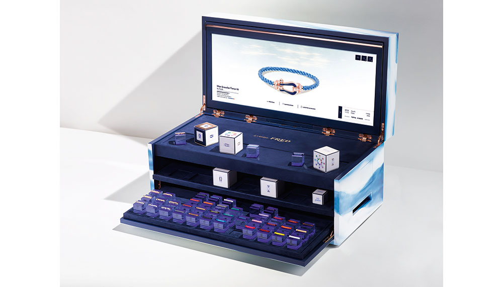 Forget a single bespoke piece, the best gift for her is one that is modular. Fred has brought its L’Atelier box to Singapore, the first of its kind in Southeast Asia. Select the type of gold and jewels for both the buckle and fastenings, then digitally match her favourite colour onto the preferred cord material. Not to worry, the machine is able to scan and detect an extensive list of Pantone colours. She’ll probably pick more than one bracelet, but you can always engrave a special message that’ll remind her of you.