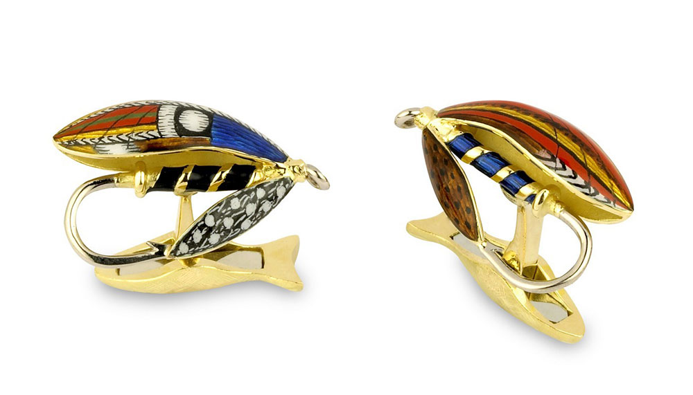Today, Deakin & Francis still makes amazing cufflinks. At the lower end of the spectrum, their designs are playful – a fish fly cufflink here, a tiny enamel shark there. As the prices increase, so does the cachet. These skull cufflinks are actually a design from yesteryears, updated to contemporary style with great precision. The brands calls this ‘the most sophisticated and luxurious cufflinks in the world.’ They could very well be right.