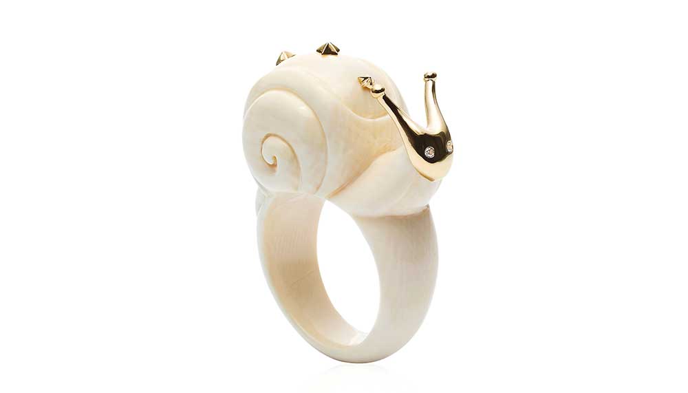 Since launching her eponymous brand 11 years ago, van der Velden has been a well-kept secret among the mostly European connoisseurs who collect her designs, but the Amsterdam-based artist is fast becoming more widely known worldwide, with striking pieces as a finely detailed snake-with-pearl bracelet carved out of a 40,000-year-old mammoth-ivory tusk, or sliced-quartz earrings that evoke jellyfish.