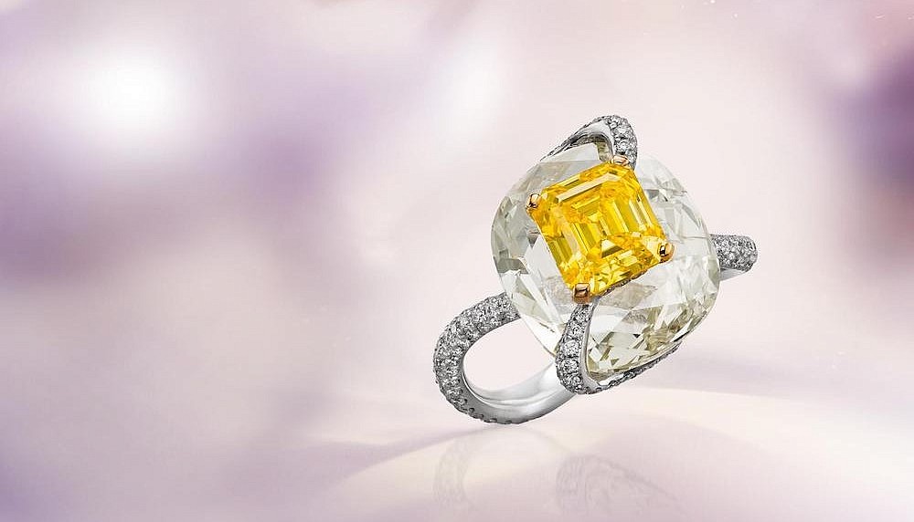 Setting stones within other stones is not new, but the Geneva-based jewellery house has refined an old-world method to yield a more contemporary style. One of its rings features a vivid yellow emerald-cut diamond set within a white oval-shaped diamond. Known as the brand’s Kissing Diamonds technique, the method was pioneered by CEO Albert Boghossian and is carried on by his nephew Ralph Boghossian, a sixth-generation jeweller and head of product development and marketing, who brought together computer-generated stone mapping and the skills of master craftsmen. Artisans still forge the company’s pieces completely by hand, but with precise measurements that minimise breakage and visible metal.