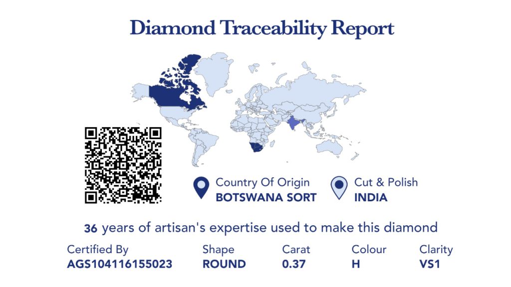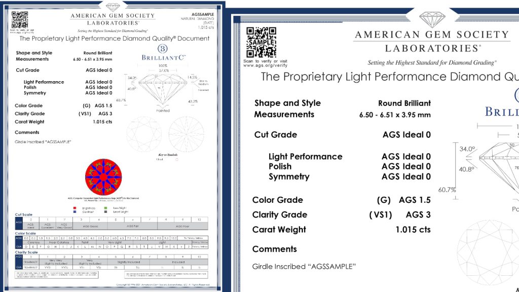 At AGS Laboratories, founded by Robert M Shipley, who also started the Gemmological Institute of America (GIA), the diamond is graded and measured three-dimensionally through its ray tracing tests. AGS Laboratories’ objective methods in reviewing diamond-cut grades possess 11 specific grades (versus five of other gem laboratories); these grading reports are made accessible on smart devices. Its Angular Spectrum Evaluation Tool lets users magnify the diamond in 360 degrees. Each BrilliantC diamond will come with a physical and digital copy of the AGS Laboratories certification.