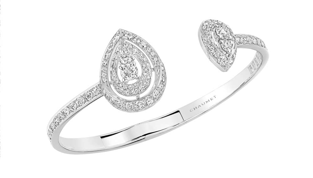 When a jewellery collection has Napoleon’s empress Josephine as a muse, one can only expect that which is fit for a royal. Chaumet’s new Rondes de Nuit line, launched under its existing Josephine Collection, is a selection of all-diamond jewellery that plays with the voluminous proportions of the pear shape. The 11 pieces comprise necklaces, earrings, rings, bracelets and watches. Some of the pendants come with adjustable clasps so the necklaces can be worn hanging down the front or the back.