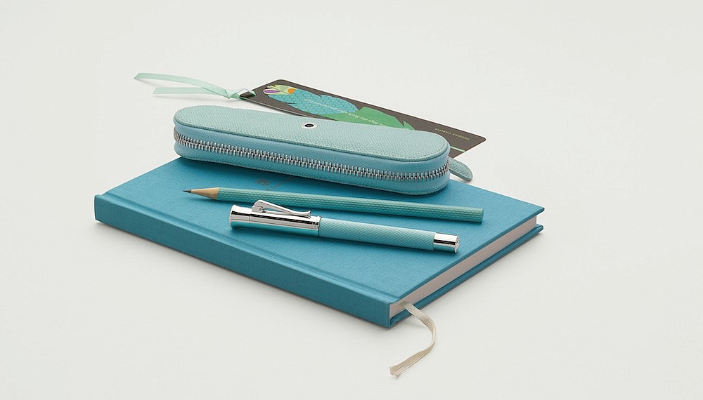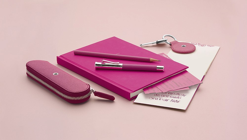 The collection includes the Guilloche Fountain Pen and Guilloche Twist Ballpoint Pen, to be used to inks of coordinating colour provided in either a stylish bottle with Graf von Faber-Castell Collection’s characteristic fluting or as a cartridge. There are also Guilloche Pencils (in sets of three) for notes and sketches and Guilloche Pocket Pencils. More than just writing implements, you may also make a bold colour statement with coordinated Graf von Faber-Castell accessories, which include leather writing instrument cases, wallets and key chain. Linen books – made by an artisan Bavarian factory and accompanied by loving-designed illustrations by artist Kera Til – will be the canvas for when inspiration strikes.
