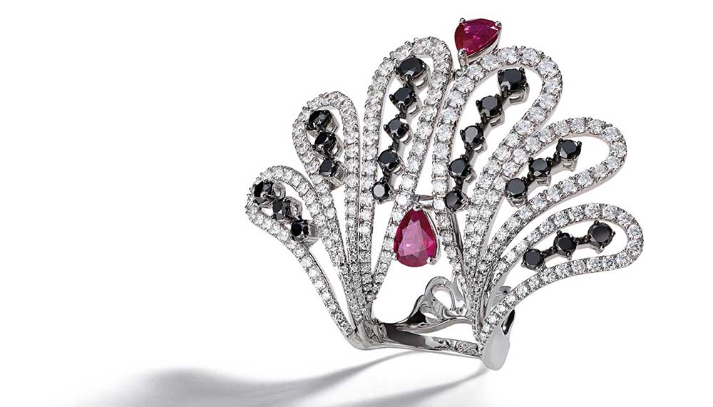 That same savoir faire and passion that runs through Damiani is also evident in this year’s masterpieces, ranging from the fan-inspired Vanita collection featuring drop-cut rubies to the Emozioni collection. The latter is a virtuoso display of gem-setting where Damiani’s goldsmiths combine two setting techniques; necessary in alternating pure marquise-cut diamonds with a stream of brilliants flanking the central diamond.