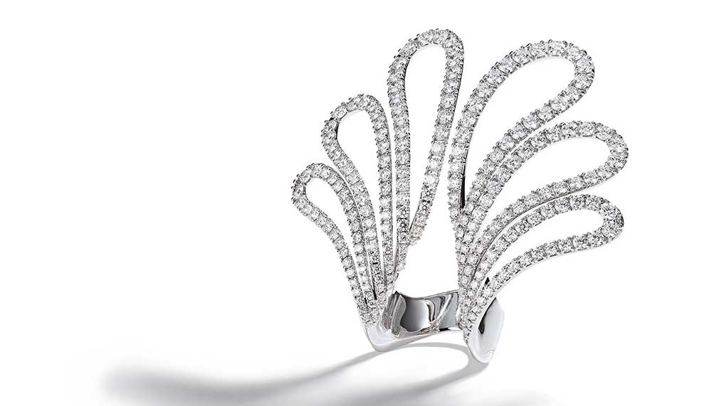 That same savoir faire and passion that runs through Damiani is also evident in this year’s masterpieces, ranging from the fan-inspired Vanita collection featuring drop-cut rubies to the Emozioni collection. The latter is a virtuoso display of gem-setting where Damiani’s goldsmiths combine two setting techniques; necessary in alternating pure marquise-cut diamonds with a stream of brilliants flanking the central diamond.