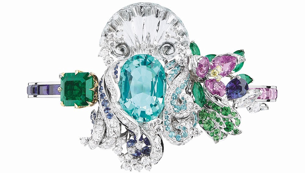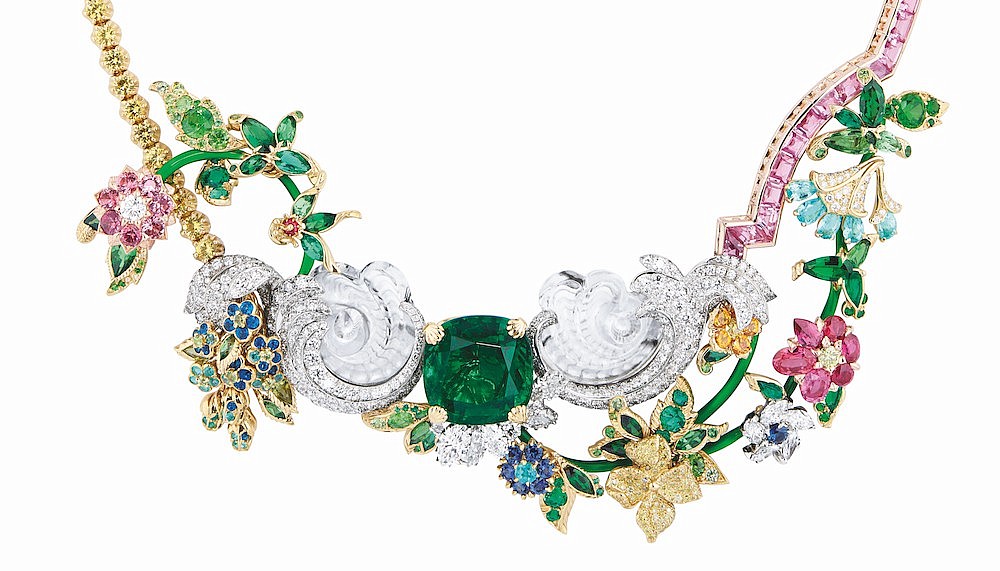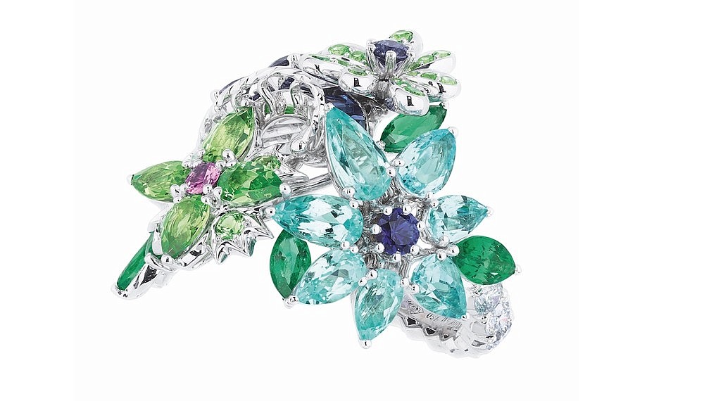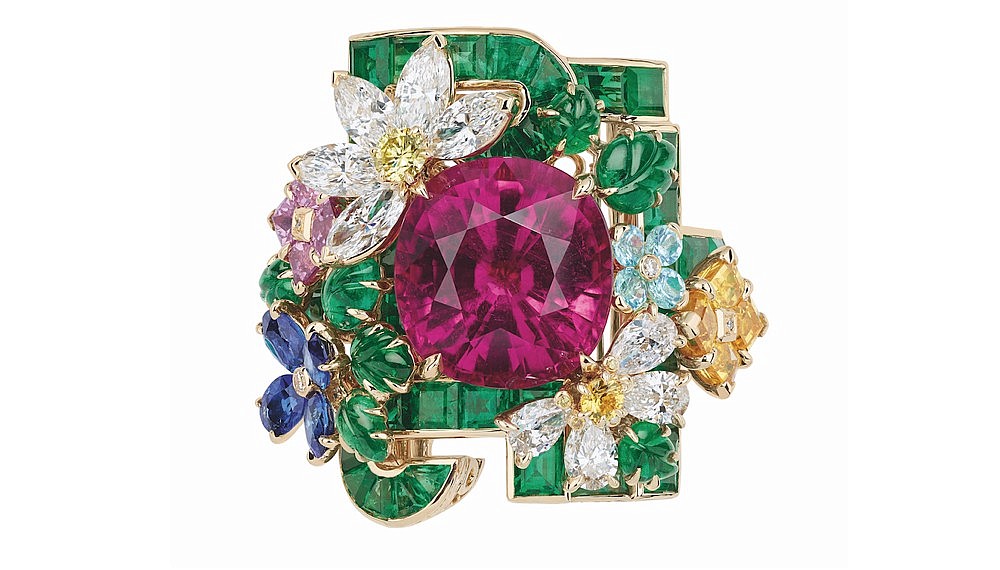 Dior Joaillerie Creative Director Victoire de Castellane is known for her flamboyant and kaleidoscopic approach to jewellery creation. This season, she has indulged in even more excess. The copse of Versailles’ verdant energy anchors a collection that explodes with exuberance and abundance. This is jewellery not for the faint-hearted, but for the bold.