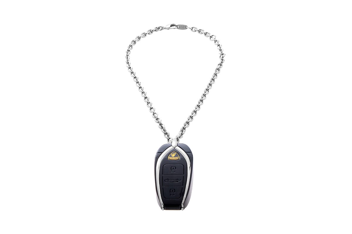 Additional highlights include the classic belt in black calfskin and the skater belt in black seatbelt webbing; a technical black tracksuit set; classic baseball caps; a polished silver Signet Ring; a car key necklace; and adjustable bracelets. Folded wallets and sleek card holders pop in high-shine black, green, or yellow, while a porcelain travel mug, stamped with both brands’ insignias, makes coffee breaks feel customised.