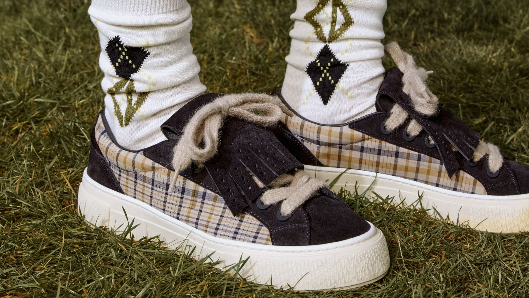 Dior bags are a luxurious investment, and this collection introduces the Saddle, the Backpack, and the Hit The Road messenger bag, reinvented in two-toned hues. Sneakerheads will want to slip on the B27 and B33 sneakers, which also come in a check-print variation and further enhanced with a fringed tongue that pays tribute to traditional golf shoes.