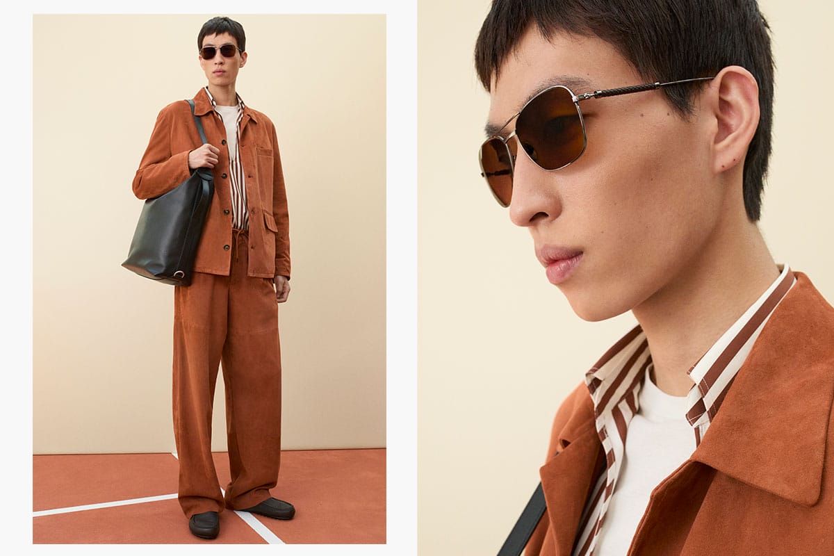 In Tod’s Spring/Summer 2026 Men’s Collection, the emblematic Gommino takes the spotlight through a concept rooted in leisure and outdoor living. It reigns across the footwear line-up, appearing in bubble, boat shoe, slipper, loafer, and sneaker styles. Silhouettes are clean and fluid, with an emphasis on ease and movement, as seen in the collection’s unstructured jackets and relaxed trousers. Pashmy—a particularly sought-after variety of goatskin known for its supremely soft, almost silky touch—is fashioned across wardrobe staples such as bombers, blazers, and coach jackets. Linen, too, is presented in crêpe, satin, and silk blends and tailored into key pieces such as the updated safari jacket. Tod’s also introduces the Travel-Wool, a newly developed fabric prized for its soft, breathable feel and versatility, and is used for travel-ready outerwear and trousers. Among the accessories, highlights include the Di Bag Folio tote, a trekking-inspired backpack, and the greca belt.