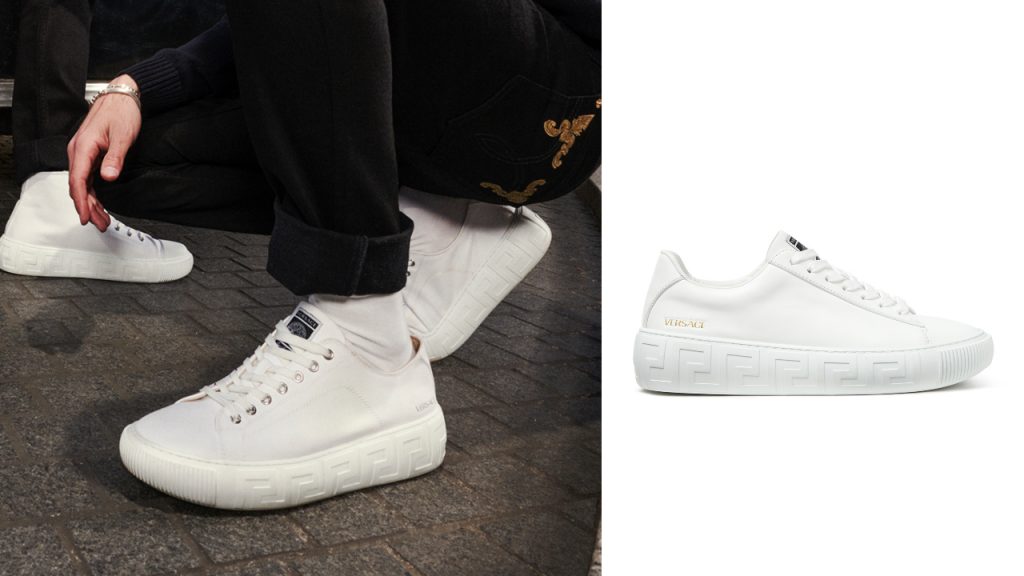 Versace’s Spring-Summer 2021 collection is all the rage this season. Inspired by the brand’s iconic geometric Greca pattern, the collection is designed with clean, understated silhouettes in mind. The Greca low-top sneakers are a classy statement piece to add to one’s shoe collection. Available in both black and white, the sneakers are crafted from pure leather and are neatly tied together with a white platform outsole adorning the brand’s signature Greca detailing.