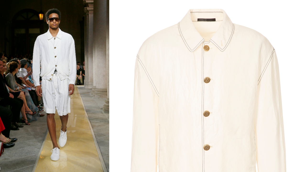 Dressed down but dignified sailing style is the pillar of the Main capsule collection, introduced for this spring and summer by Giorgio Armani. Featuring a palette of dark green, touches of red, and, of course, dark blue and white, its single- and double-breasted jackets recall traditional uniform designs but their relaxed fits indicate their leisurely intent—and if there was any doubt, one can opt for the Bermuda shorts over the trousers. Satin-finished gold Armani logo gold buttons and moss-stitched hand-crafted pinstriping are the fine, luxurious touches.
