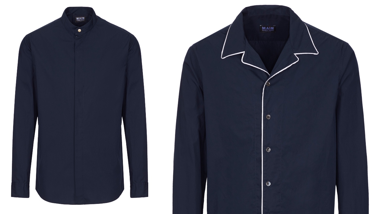 The materials used are eminently lightweight and practical for warm weather: the jackets are in linen and viscose canvas, while t-shirts and polos are in stretch viscose. The Mandarin collared or edged shirts are in ultra-lightweight cotton. A durable technical fabric, used for jackets, shorts and trousers, is available in a green similar to Giorgio Armani’s personal superyacht, Main. The yacht is an expression of the man himself—understated and straightforward in its luxurious elegance, as is typical of Armani design. The distinctive lettering of its name is found as this collection’s logo, most notably found on the back of the casual jacket.