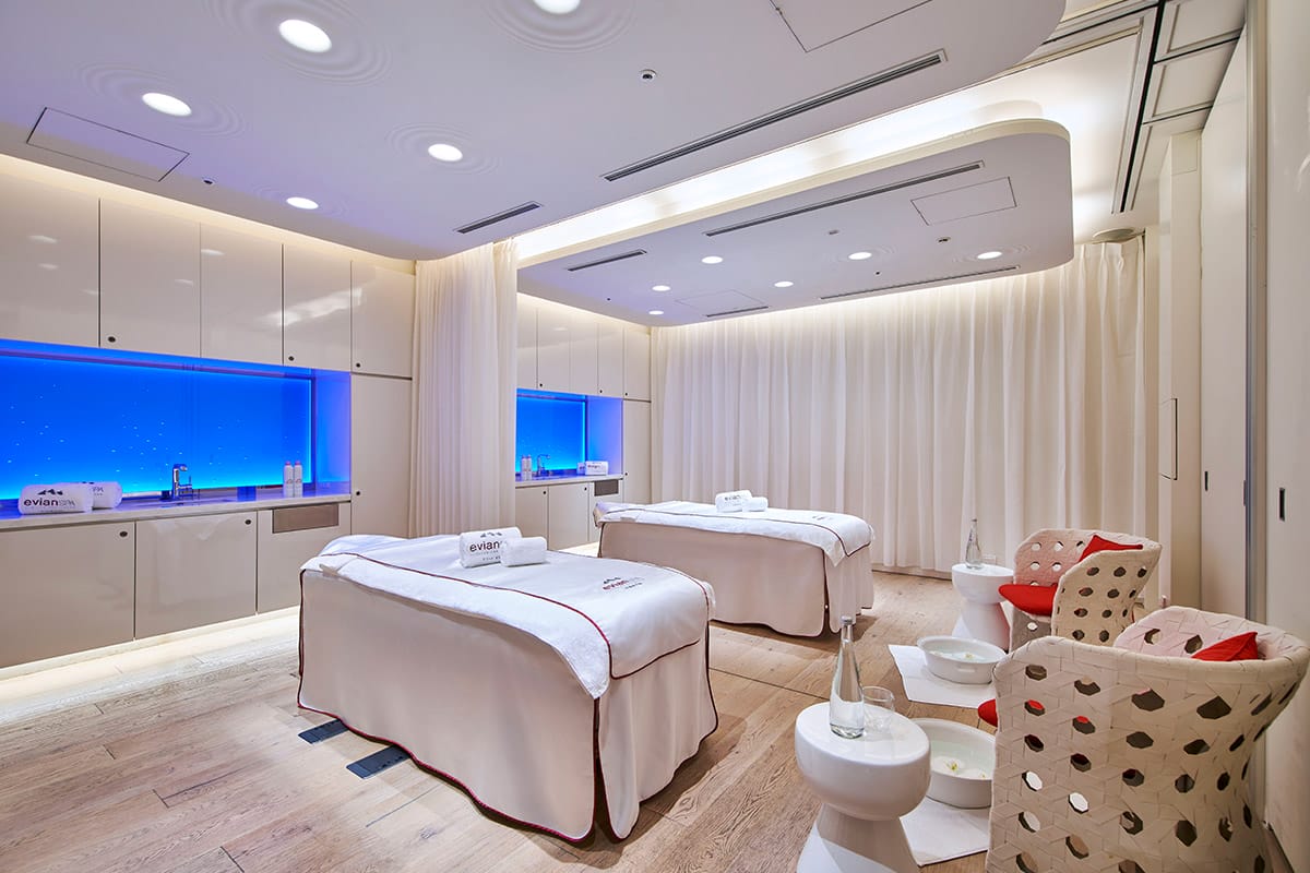 Located on the fifth floor of the Palace Hotel Tokyo (which itself is located right next to the Imperial Palace), the Evian Spa Tokyo is a sanctuary within a haven inside a paragon of Japanese hospitality, luxury, and excellence. It is the only Evian-branded Spa in Japan, and one of only three outside France. The spa is inspired by the 15-year journey the natural mineral water takes, from rainfall and snowmelt, and on towards its filtration through the Alps. The five treatment rooms are named after a peak in the august mountain range. Together with the French sophistication comes Japanese spirit and techniques, expressed in the body scrubs, facials, therapies, journeys, and rituals—many of which utilise Evian water.