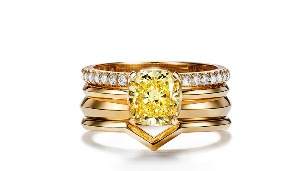 The last time a fresh range was introduced was in 1999, so this represents a significant milestone for the company. Among the hallmarks present on the ring, are the tempered reflectiveness of the platinum or yellow gold bands that do not compete with the diamond for attention. Plus Tiffany’s use of saturated yellow stones to retain their colour throughout the cutting and polishing process.