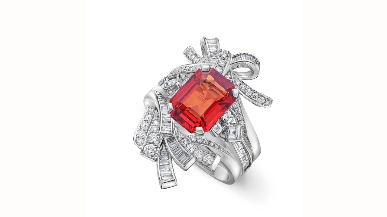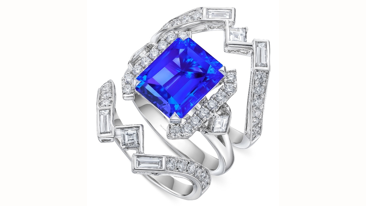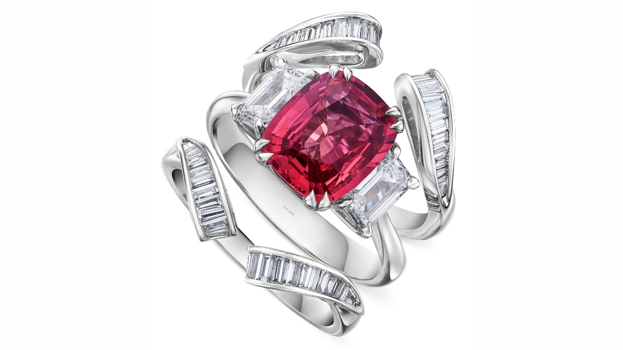 DeGem’s Morphe Rings are bejewelled with centre stones that showcase some of nature’s most sought-after kaleidoscopic treasures, reflecting DeGem’s long-standing philosophy in global gemstone sourcing and stringent beauty standards. A 4.32-carat octagon sapphire, the ardent Orange Sapphire ring is surrounded by 19 tapered and 21 round brilliant diamonds, while the rosette Pink Sapphire is set in 18k white gold with a 2.89-carat cushion-cut sapphire. Also in 18k white gold, the ethereal Padparadscha Sapphire is bundled with a 2.72-carat cushion-cut sapphire, alongside the spellbinding Emerald ring decked with 2.05-carat octagon emerald. Lastly, the soulful Tanzanite ring boasts a 2.9-carat octagon tanzanite, accented with one baguette diamond and four brilliant diamonds. Each Morphe ring jacket is customisable, allowing for effortless stacking with any chosen gemstone ring, which results in three-dimensional marvels.