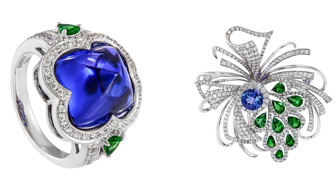 Other standout pieces in this campaign include a diamond bracelet with tsavorite gemstones, a tanzanite and tsavorite brooch, and a spinel diamond necklace paired with a matching spinel diamond ring—all decked in 18k white gold.
