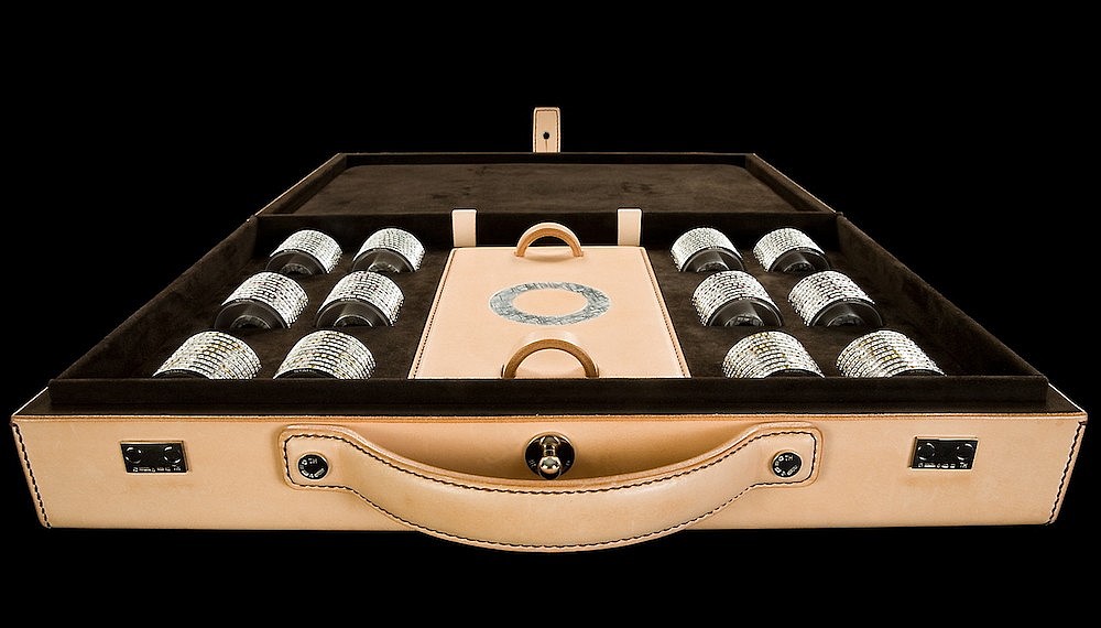 Meteor shards aren’t the only precious material in these chips, all 120 of which are covered in 18K white gold and lined on the edges with diamonds, Burmese rubies and Sri Lankan sapphires. Five die accompany the set, each dice being made of ivory sourced from a Siberian woolly mammoth fossil. A set of playing cards, made from humbler but still high quality materials, are packed together with the dice and chips in a briefcase made of Swedish calf skin and reindeer suede. The price for all this extravagance? US$150,000 (RM659,718). The sensation when the reap the entire pile of chips on a Royal Flush? Priceless.