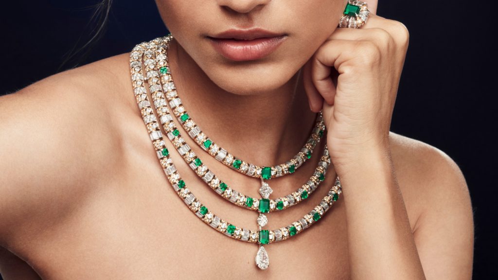 The pièce de résistance of the Bravery High Jewellery collection is the three-row Le Mythe necklace (top) that combines several Louis Vuitton signatures, including the Damier (checkerboard) pattern, studs and motifs inspired by trunk locks and the flower icon. Encrusted with sapphires, emeralds and diamonds, it represents Vuitton laying the foundations for his house that is now a global tour de force worth almost US$15 billion. That’s certainly worth celebrating.