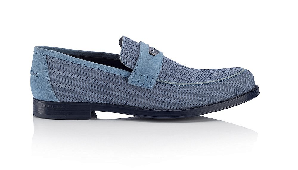 The men’s line from Jimmy Choo also takes cues from its sky-high stiletto designs by incorporating playful textures into classically masculine styles. For spring, the brand has reimagined the loafer and the derby in intricately woven suede, lending a more casual air to the typically buttoned-up styles. Both designs also feature cheeky details, like a gunmetal penny slotted into the loafers or a scalloped leather sole to further soften the traditionally chunky derby.