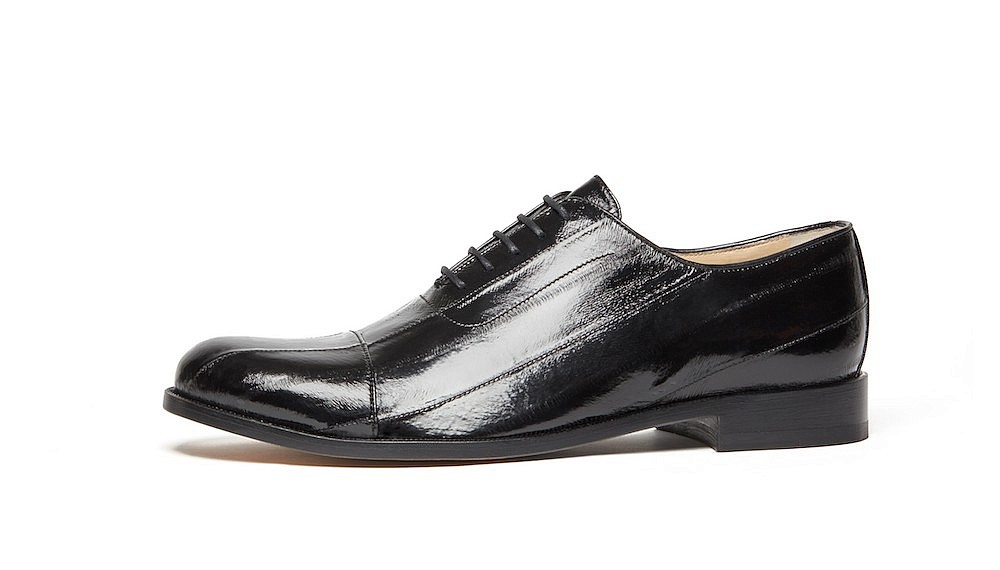 With its second men’s collection, Paul Andrew has continued to introduce strong formal designs that expertly ride the line between being daring and going over the top. Dress shoes clad in thin strips of eel that mimic high-shine PVC is an edgy update to the classic patent-leather style. Even the brand’s traditionally crafted brogues get an edgy update when done in a deep bottle-green leather