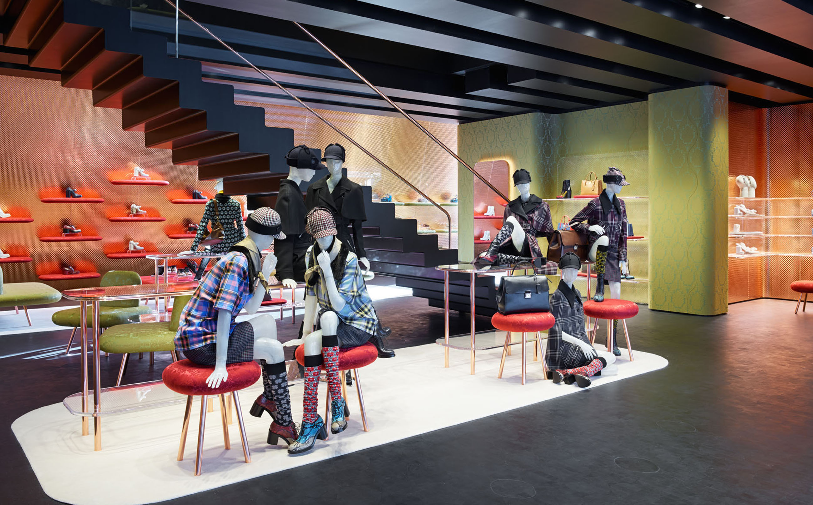 With an industrial facade and an angled steel-panelled canopy revealing only a sliver of the store’s glass front, Miu Miu Aoyama beckons the curious.