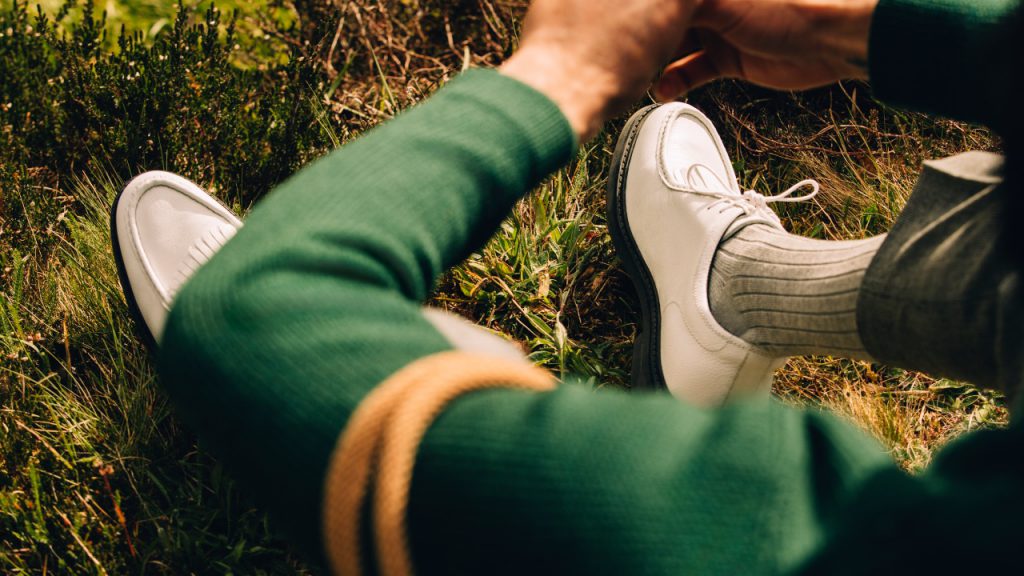 For its golf collection, Mr P looked to fairway OGs like Arnold Palmer and Jack Nicklaus for style cues. The results are reverent of the game’s rich culture and many traditions (collars are abundant, in observation of clubhouse rules, and pockets have been engineered to fit scorecards) but subtly tweaked to look just as good off the course. Even the more technical designs, like a pair of golf shoes riffing on Mr P’s best-selling derbies, wear their performance ability lightly.