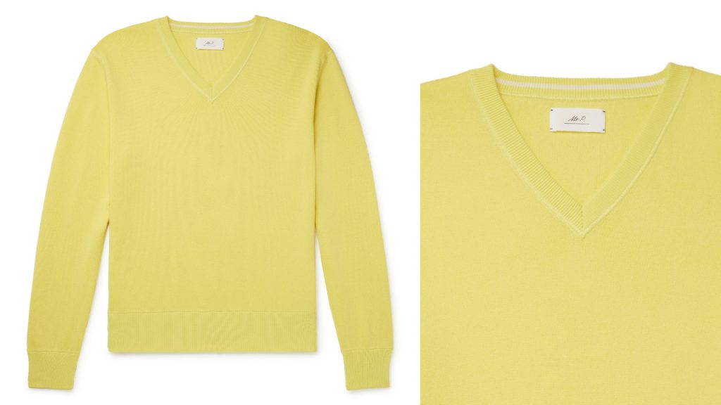 “If there’s one thing this year has taught me, a wardrobe with a sunny disposition is an instant mood booster. So, I’d highly recommend this classic V-neck sweater. The soft, bright yellow yarns are knitted with a relaxed fit for easy layering on and off the course.”