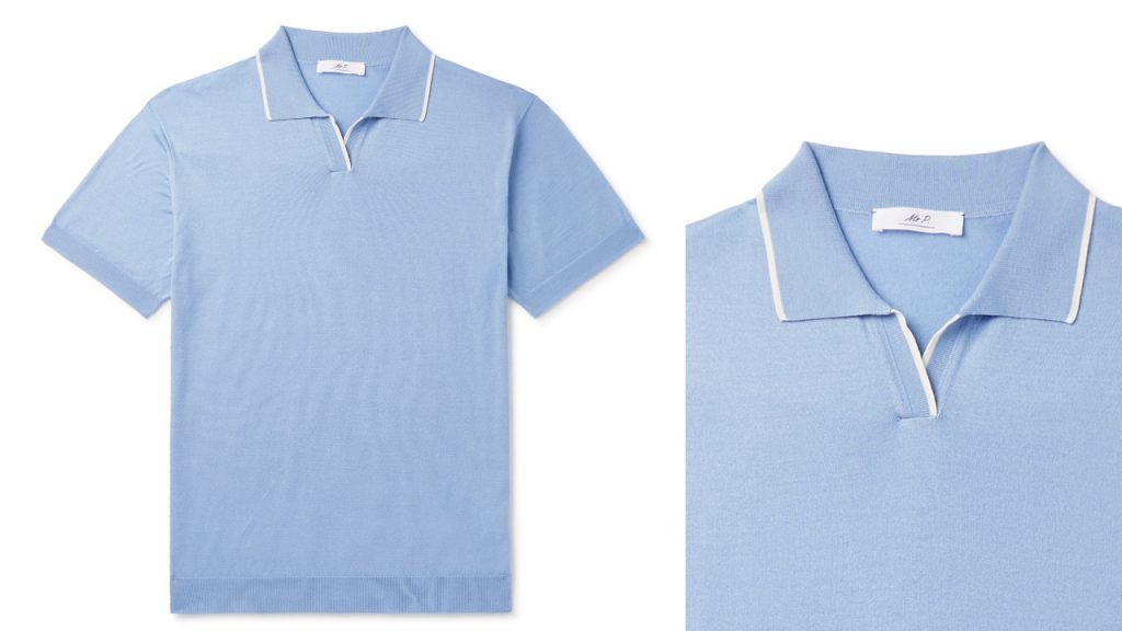 “This colourway of our relaxed open Johnny collar polo is smarter-looking than a buttoned-up polo and is soft and breathable for those warmer days.”