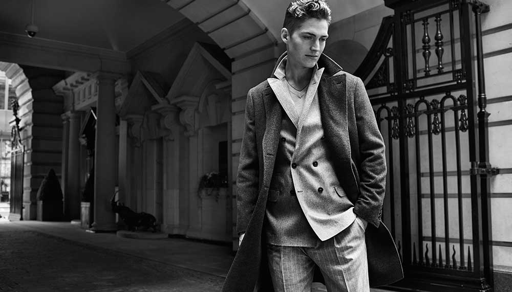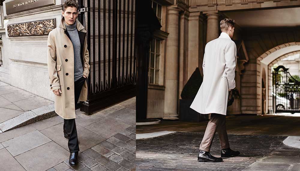 Paul Smith double-breasted wool overcoat; Gieves & Hawkes wool-and-cashmere trousers; Jimmy Choo Chelsea boots.