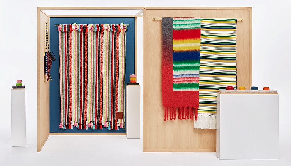 These exclusive behind-the-scenes images are testament to the dexterous handiwork and technical finesse of the ateliers. First seen at the Salone del Mobile exhibition in Milan this April, each bag is assembled at LOEWE’s workshops in Spain. But the fabrics have come from far and wide, featuring the hard work of Japan’s indigo farmers, kimono artisans, and sashiko stitchers as well as the vibrant patchworks from West Africa’s Senegal and Togo.