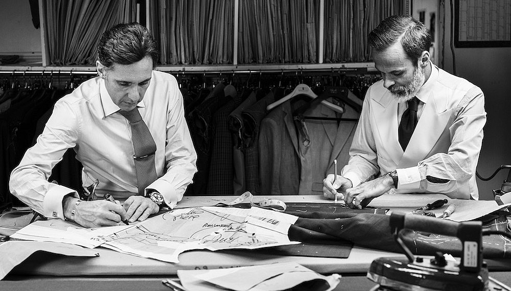 At 31 rue Marbeuf, the house of Cifonelli proudly stands as one of Paris’s coveted places for bespoke suits for those in-the-know. The address – not to be confused with Cifonelli’s rue de Faubourg Saint-Honoré flagship boutique – has been the company’s bespoke atelier since 1936, when, after taking over his father’s tailoring business, the Italian-born Arturo Cifonelli established the 8th-arrondissement shop. In the years following its debut, the Paris tailoring house and its iconic Italian-English style garnered a devoted following that included Cary Grant, Marcello Mastroianni, Fred Astaire, and a number of other A-listers. Today, cousins Lorenzo and Massimo Cifonelli continue the legacy as the fourth-generation heirs, growing the brand globally while actively preserving its signature style (featuring a distinguished forward-cut shoulder) and traditional techniques of tailoring. Every bespoke Cifonelli suit is handcrafted in-house by the atelier’s 40 tailors. And, clients can expect to meet with one of the Cifonellis for their consultation and fitting.