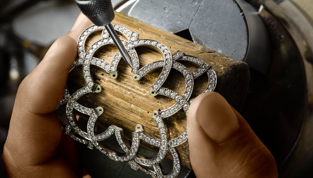 The piece that most exemplifies Piaget must be the Extremely Piaget secret cuff watch (RM890,000). Fashioned out of 18k white gold and set with 601 brilliant-cut diamonds, its capstone is a 15.65-carat hand-worked amethyst that conceals a dainty watch and the in-house 56P quartz movement within. It is here that the maison’s exquisite mastery of gem setting, engraving and watchmaking come together.