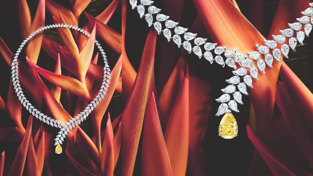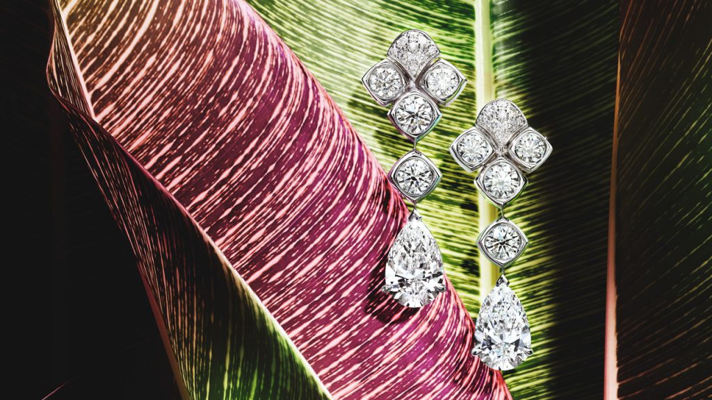 Of the 80-plus constituents of Piaget’s new Wings of Light high jewellery collection, one particular piece stands out. The bulk of the collection is in riotous colour, in a way that gives up none of the maison’s customary elegance; tropical jungle and birds-of-paradise inspirations are expressed through an artistic flurry of floral, feather and foliage motifs expressed through prismatic gems and a streamlined, modern silhouette.