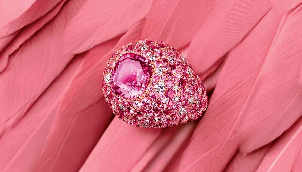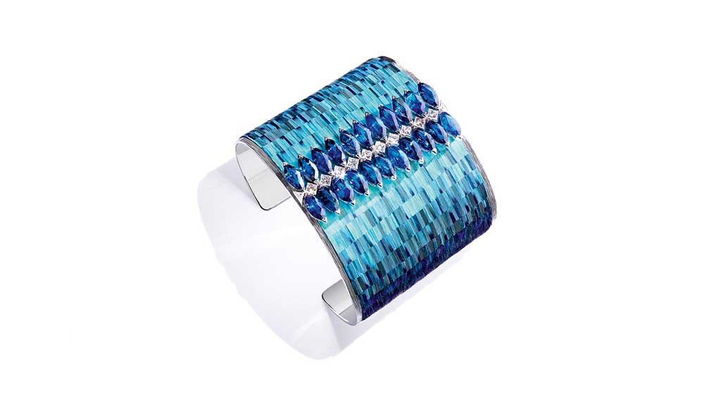 Enter Piaget’s cheerily-named Sunny Side of Life high jewellery collection, showcased at a lavish exhibition in Singapore in January following its launch in Paris last summer. Rife with exuberant sunburst motifs and a cornucopia of coloured stones, the collection will undoubtedly lend wearers a radiant aura, particularly with pieces as ravishing as the gold necklace with its weave-like textured surface and centrepiece anchored by a splendid 7.84-carat oval Paraiba tourmaline.