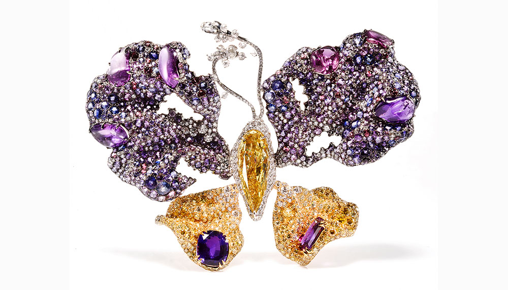 Chao has also achieved significant recognition with her 2009 Black Label Masterpiece, the Royal Butterfly brooch, which was inducted into the Smithsonian National Museum of Natural History in 2013, taking pride of place in a collection that consists mainly of period pieces and gems. Likewise, Hu’s Cote d’Azur brooch set global auction records for the highest price paid to a creation by a contemporary designer.
