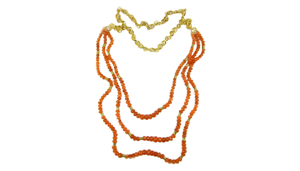 American designer Katey Brunini handcrafted this 18-karat yellow gold necklace (US$70,640/RM312,900) with more than 860 carats of spessartite garnet beads.