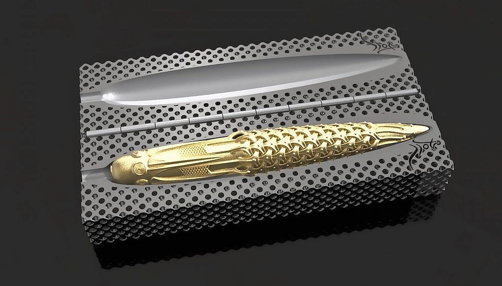 The utility of pens may be diminishing in the modern age, but what about pens as objet d’art? As Montblanc and David Oscarson, among others, have proven, there is a dedicated market to creating beautiful pens to grace the desk of a discriminating individual. Dutch designer Rein van der Mast certainly believes so, creating the Spica Virginis – the world’s first 3D printed gold pen.